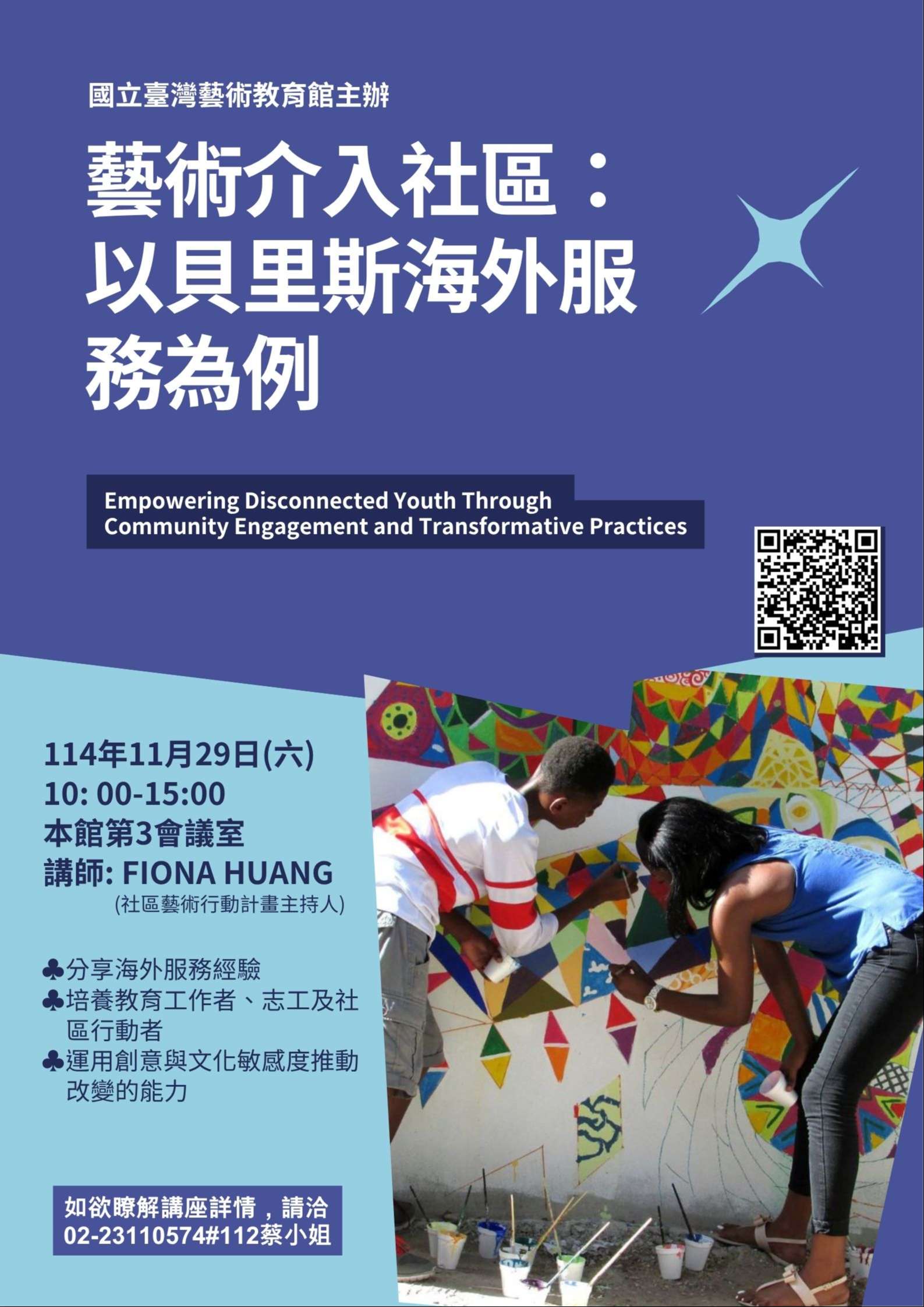 | (七) | 參與對象:教育人員、藝術教育工作者、海內外志工與國際服務團成員、青年社區工作者、社會設計從業者及對藝術與社區實踐有興趣之一般民眾。 |