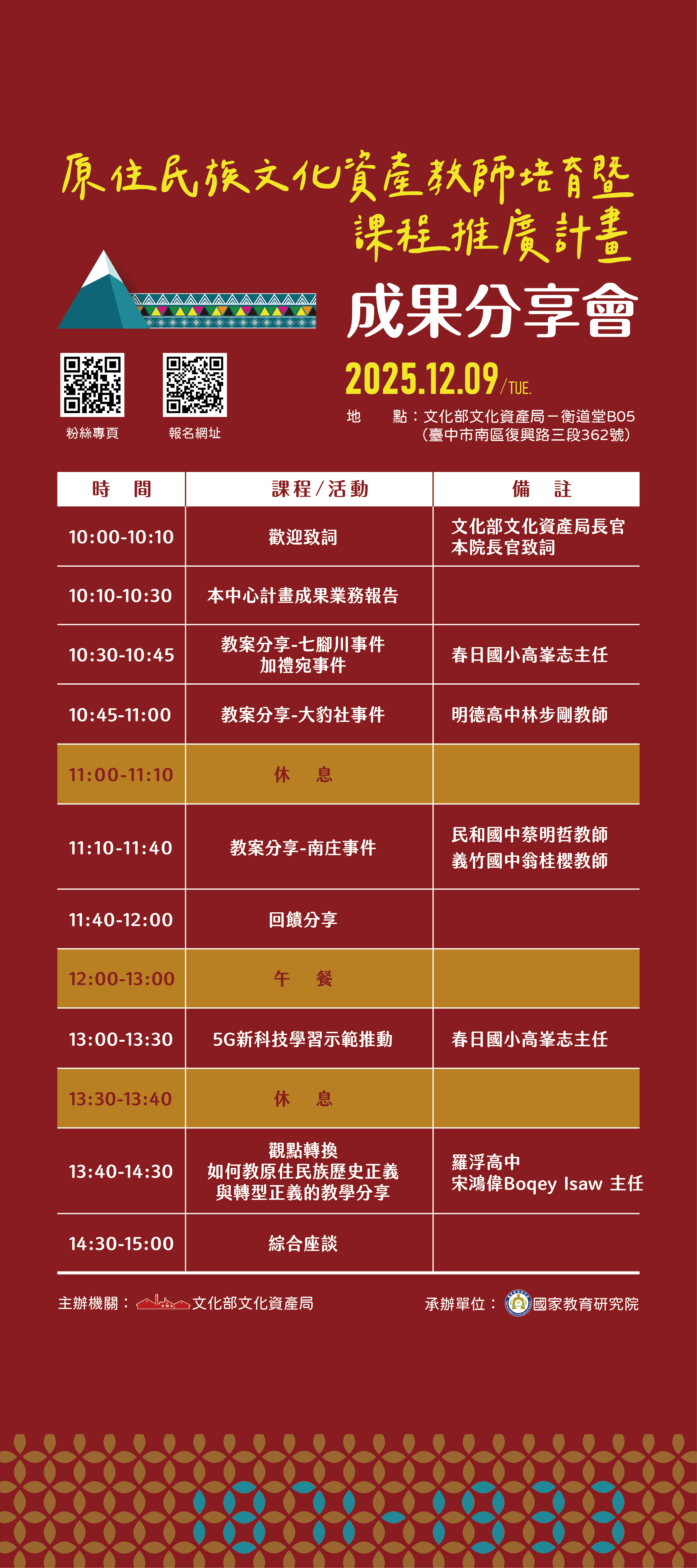 國家教育研究院「原住民族文化資產教師培育暨推廣課程計畫」成果分享會