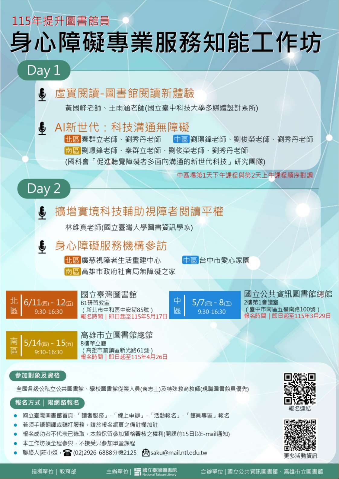 | 四、 | 課程詳細資訊歡迎參閱計畫書或逕至該館網站最新消息(https://www.ntl.edu.tw)項下查詢下載。 |