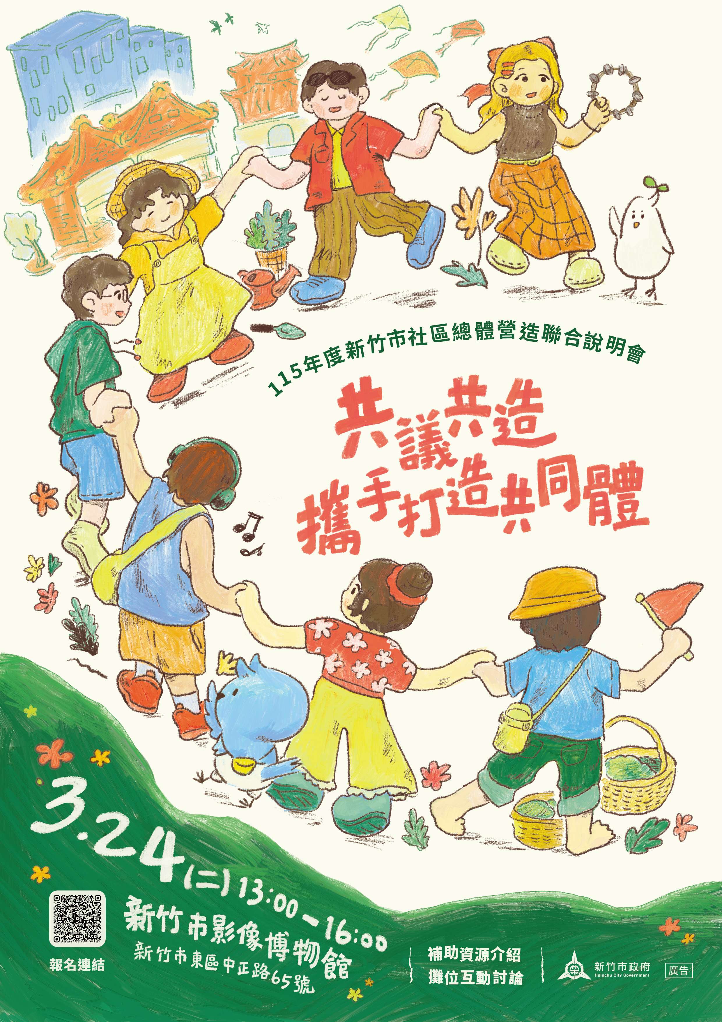 | 三、 | 檢附聯合說明會海報電子檔,詳情請參見新竹市社區營造中心臉書粉絲專頁(https://www.facebook.com/hsinchucc)。 |