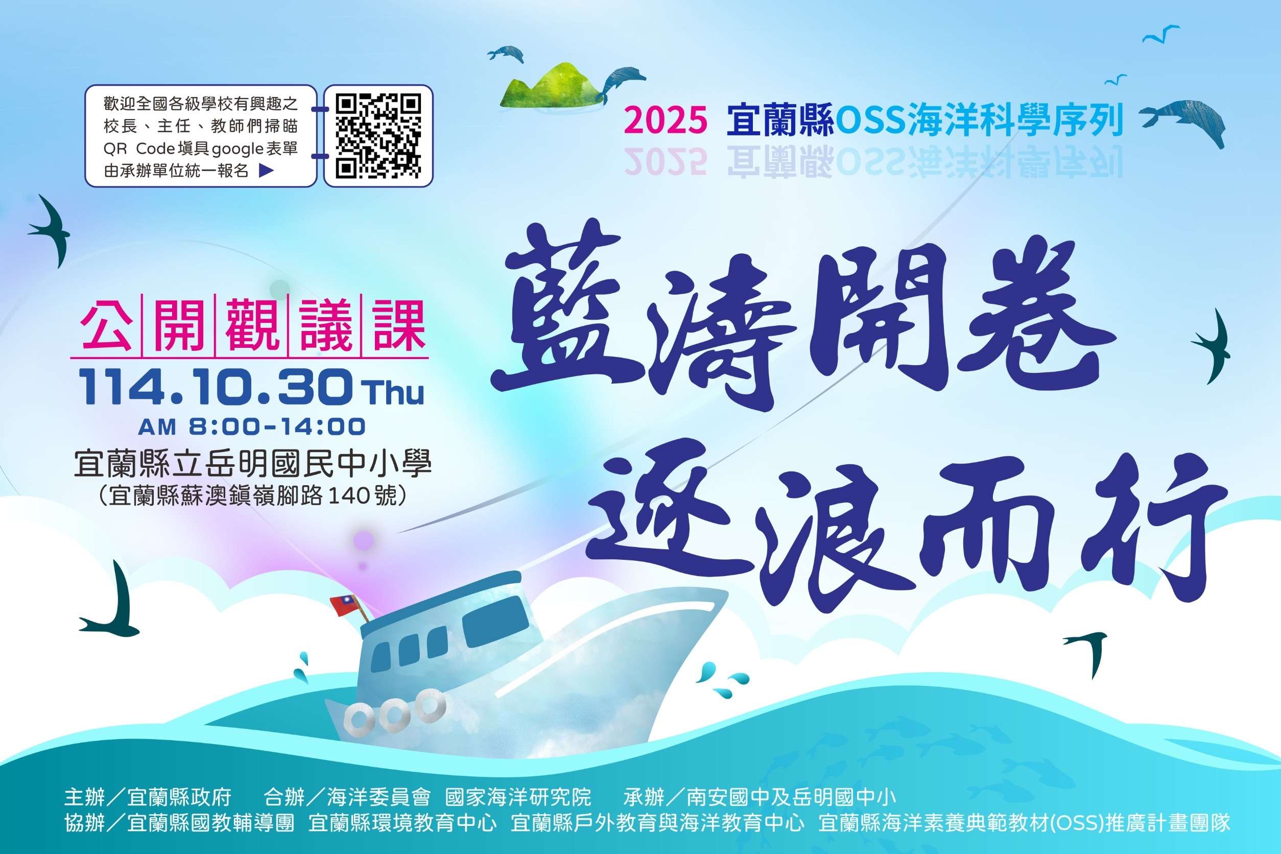 主旨:檢送「2025宜蘭縣OSS海洋科學序列『藍濤開卷,逐浪而行』公開觀議課成果會實施計畫」1份,請查照。