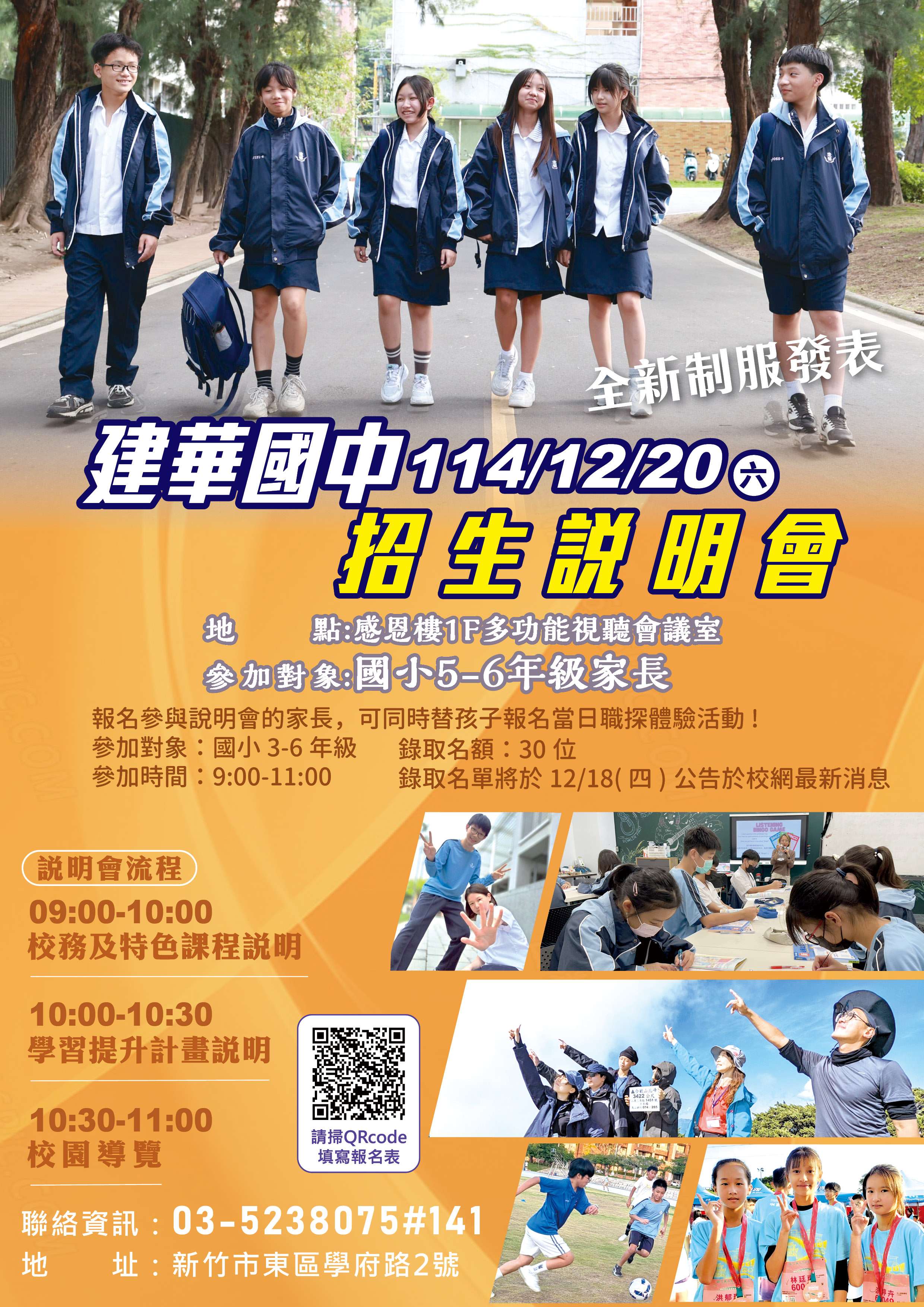 | 一、 | 招生說明會時間:114年12月20日(六)9:00-11:00 |
