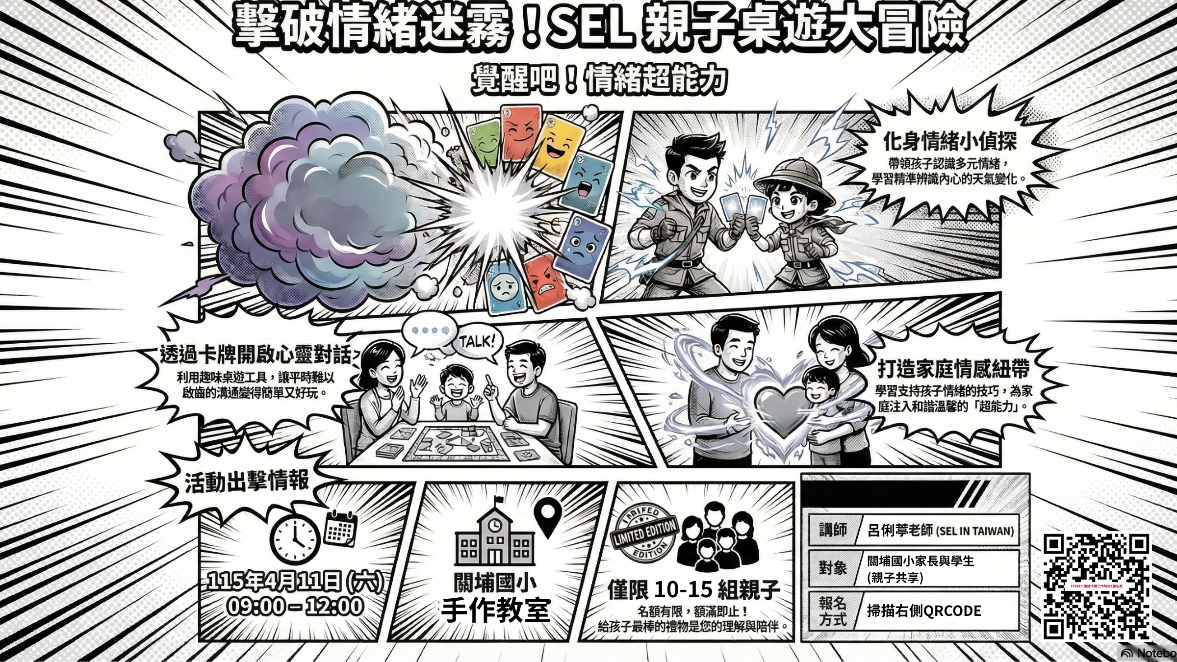您是否覺得孩子的情緒內斂、難以捉摸?或者想增進親子間的溝通互動?本校特別邀請 SEL IN TAIWAN 團隊的呂俐葶老師,帶領大家透過有趣的「情緒卡牌」,在遊戲中學習覺察,命名與表達情緒,為家庭建立更緊密的情感支持系統!