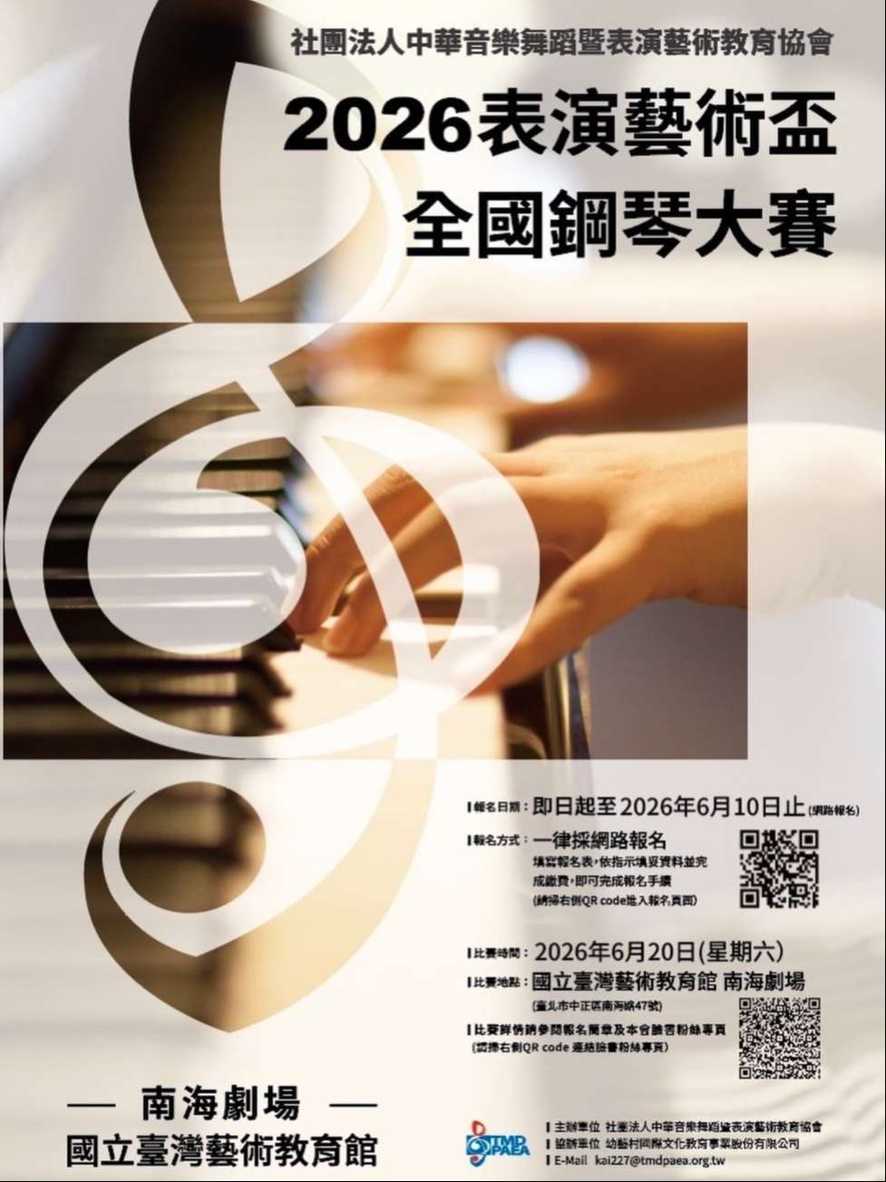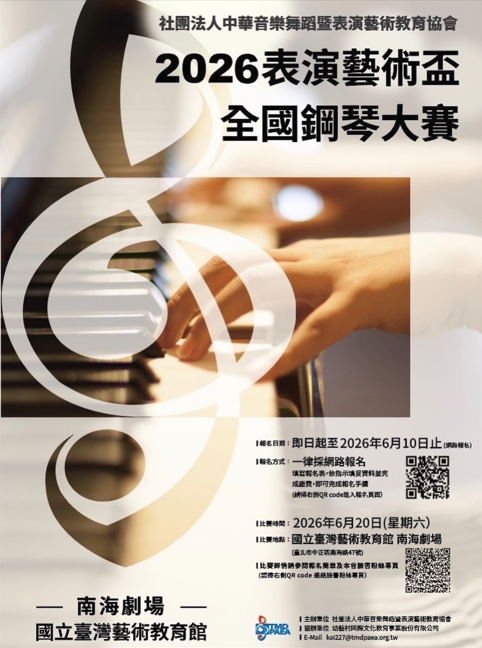中華音樂舞蹈暨表演藝術協會舉辦「2026表演藝術盃全國鋼琴大賽」